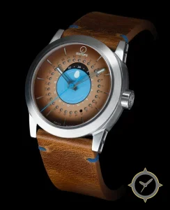 Eine GMT-Uhr mit einem 37mm Gehäuse im Vintage-Stil gefertigt aus Edelstahl mit einem Zifferblatt in braun und einer besonderen "sunburst gradient"-Oberfläche und einer echten GMT-Funktion, mit der du eine zweite Zeitzone verfolgen kannst.