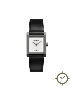 Eine Dress-Uhr mit einem 30mm Gehäuse im Vintage-Stil gefertigt aus Edelstahl mit einem Zifferblatt in weiß und einer besonderen "guilloche"-Oberfläche.