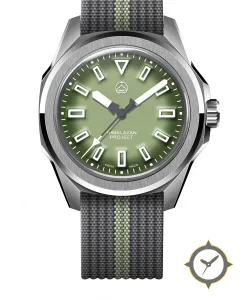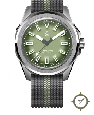 Eine Field-Uhr mit einem vielseitigen 38.5mm Gehäuse, das an fast jedes Handgelenk passt, gefertigt aus Edelstahl mit einem Zifferblatt in grün und einer besonderen "sunburst gradient with subtle matte finish"-Oberfläche.