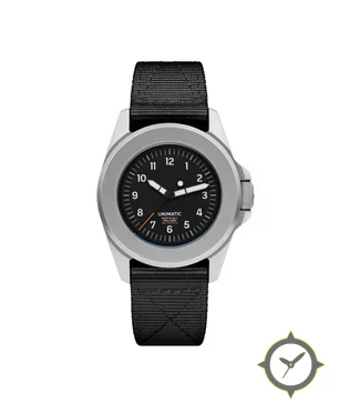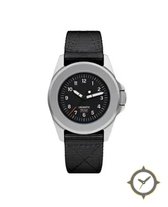 Eine Taktisch-Uhr mit einem vielseitigen 40.5mm Gehäuse, das an fast jedes Handgelenk passt, gefertigt aus Edelstahl mit einem Zifferblatt in schwarz und einer besonderen "matte"-Oberfläche.