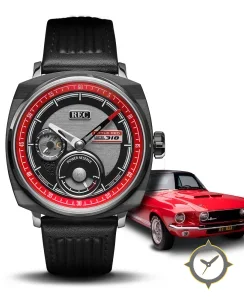Eine Racing-Uhr mit einem 35mm Gehäuse im Vintage-Stil gefertigt aus Edelstahl mit einem Zifferblatt in grau und einer besonderen "brushed metal"-Oberfläche und einer praktischen Gangreserveanzeige.