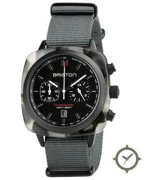 Eine Chronograph-Uhr mit einem markanten 42.5mm Auftritt am Handgelenk, gefertigt aus Harz mit einem Zifferblatt in schwarz und einer besonderen "matte"-Oberfläche.