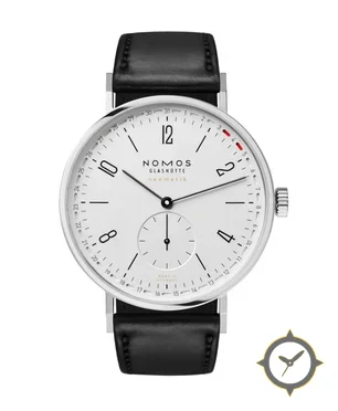 Eine Dress-Uhr mit einem markanten 43mm Auftritt am Handgelenk, gefertigt aus Edelstahl mit einem Zifferblatt in weiß und einer besonderen "matte lacquer"-Oberfläche.
