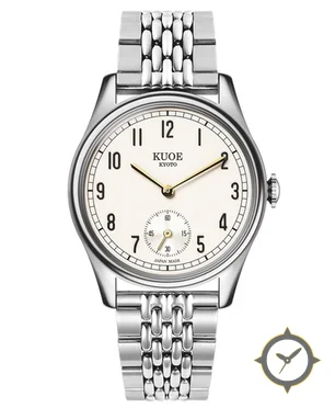 Eine Dress-Uhr mit einem vielseitigen 38.5mm Gehäuse, das an fast jedes Handgelenk passt, gefertigt aus Edelstahl mit einem Zifferblatt in weiß und einer besonderen "lacquer"-Oberfläche.