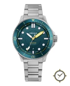 Eine Taucheruhr-Uhr mit einem markanten 42mm Auftritt am Handgelenk, gefertigt aus Edelstahl mit einem Zifferblatt in türkis und einer besonderen "brushed"-Oberfläche.