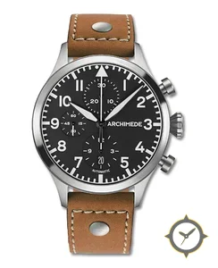 Eine Pilot-Uhr mit einem 36mm Gehäuse im Vintage-Stil gefertigt aus Edelstahl mit einem Zifferblatt in schwarz und einer besonderen "matte"-Oberfläche.