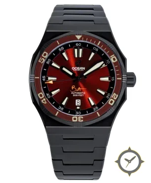 Eine Taucheruhr-Uhr mit einem vielseitigen 38mm Gehäuse, das an fast jedes Handgelenk passt, gefertigt aus Edelstahl mit einem Zifferblatt in rot und einer besonderen "radial sunburst (sunray)"-Oberfläche.