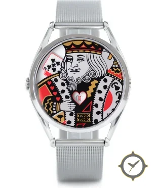 Eine Dress-Uhr mit einem vielseitigen 39.5mm Gehäuse, das an fast jedes Handgelenk passt, gefertigt aus Edelstahl mit einem Zifferblatt in weiß und einer besonderen "printed"-Oberfläche.