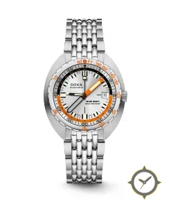 Eine GMT-Uhr mit einem markanten 48.5mm Auftritt am Handgelenk, gefertigt aus Edelstahl mit einem Zifferblatt in silber und einer besonderen "radial sunburst brushed"-Oberfläche und einer echten GMT-Funktion, mit der du eine zweite Zeitzone verfolgen kannst.