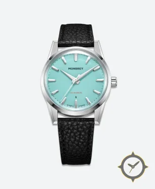 Eine Dress-Uhr mit einem vielseitigen 40.5mm Gehäuse, das an fast jedes Handgelenk passt, gefertigt aus Edelstahl mit einem Zifferblatt in türkis und einer besonderen "smooth lacquer"-Oberfläche.