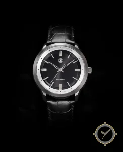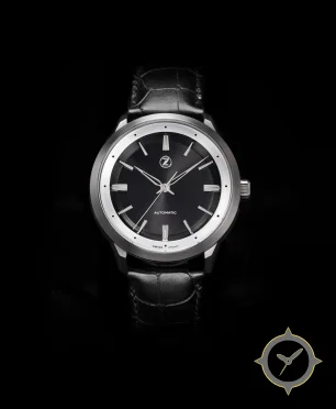 Eine Dress-Uhr mit einem vielseitigen 39.5mm Gehäuse, das an fast jedes Handgelenk passt, gefertigt aus Edelstahl mit einem Zifferblatt in schwarz und einer besonderen "sunburst"-Oberfläche.