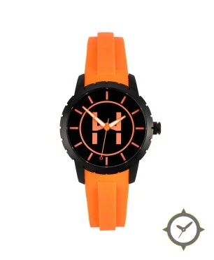 Eine Sport-Uhr mit einem 34.5mm Gehäuse im Vintage-Stil gefertigt aus Harz mit einem Zifferblatt in schwarz und einer besonderen "glossy"-Oberfläche.