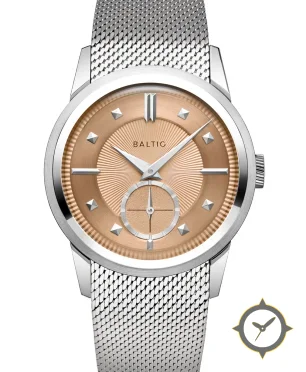 Eine Dress-Uhr mit einem 29mm Gehäuse im Vintage-Stil gefertigt aus Edelstahl mit einem Zifferblatt in gold und einer besonderen "sunburst guilloché with concentric circular grooves"-Oberfläche.