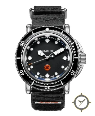 Eine Taucheruhr-Uhr mit einem markanten 49mm Auftritt am Handgelenk, gefertigt aus Edelstahl mit einem Zifferblatt in schwarz und einer besonderen "matte"-Oberfläche.
