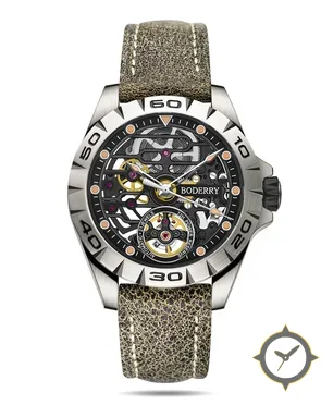 Eine Skelett-Uhr mit einem 36mm Gehäuse im Vintage-Stil gefertigt aus Edelstahl mit einem Zifferblatt in schwarz und einer besonderen "open-worked / skeleton"-Oberfläche und einer praktischen Gangreserveanzeige.