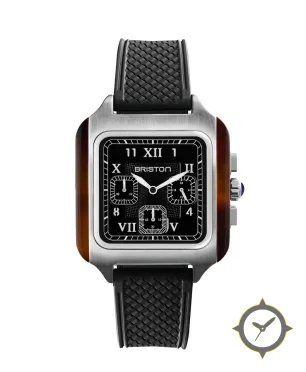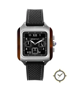 Eine Chronograph-Uhr mit einem vielseitigen 39.5mm Gehäuse, das an fast jedes Handgelenk passt, gefertigt aus Edelstahl mit einem Zifferblatt in schwarz und einer besonderen "guilloche center with matte outer track"-Oberfläche.