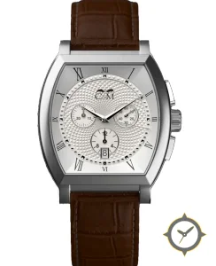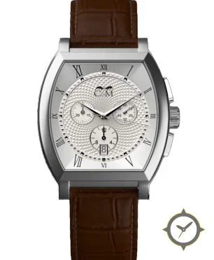 Eine Dress-Uhr mit einem 36mm Gehäuse im Vintage-Stil gefertigt aus Edelstahl mit einem Zifferblatt in silber und einer besonderen "guilloche (hobnail/sunburst)"-Oberfläche.