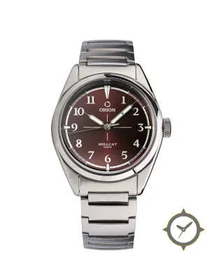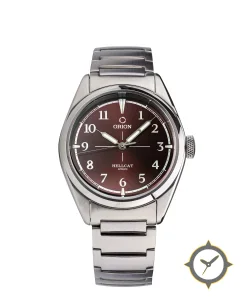 Eine Field-Uhr mit einem vielseitigen 38.5mm Gehäuse, das an fast jedes Handgelenk passt, gefertigt aus Edelstahl mit einem Zifferblatt in braun und einer besonderen "sunburst"-Oberfläche.