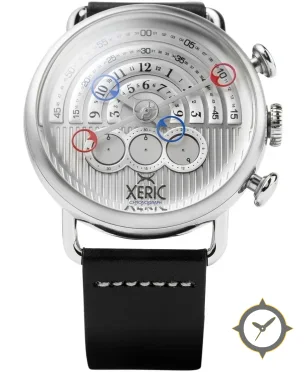 Eine Chronograph-Uhr mit einem markanten 43mm Auftritt am Handgelenk, gefertigt aus Edelstahl mit einem Zifferblatt in silber und einer besonderen "brushed/sunburst with vertical ribbed guilloche in lower half"-Oberfläche.