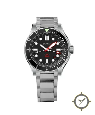 Eine Luftfahrt-Uhr mit einem markanten 41.5mm Auftritt am Handgelenk, gefertigt aus Edelstahl mit einem Zifferblatt in schwarz und einer besonderen "matte"-Oberfläche.