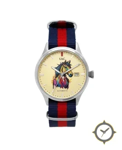 Eine Field-Uhr mit einem 37mm Gehäuse im Vintage-Stil gefertigt aus Edelstahl mit einem Zifferblatt in weiß und einer besonderen "matte"-Oberfläche.