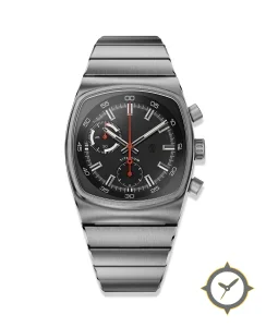 Eine Chronograph-Uhr mit einem 36mm Gehäuse im Vintage-Stil gefertigt aus Titan mit einem Zifferblatt in schwarz und einer besonderen "matte"-Oberfläche.