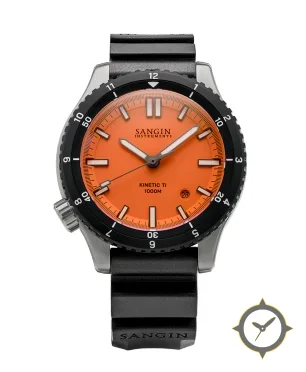 Eine Taucheruhr-Uhr mit einem 29.5mm Gehäuse im Vintage-Stil gefertigt aus Titan mit einem Zifferblatt in orange und einer besonderen "matte"-Oberfläche.