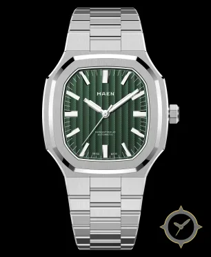 Eine Sport-Uhr mit einem vielseitigen 39.5mm Gehäuse, das an fast jedes Handgelenk passt, gefertigt aus Edelstahl mit einem Zifferblatt in grün und einer besonderen "vertical striped guilloché"-Oberfläche.
