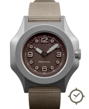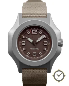 Eine Field-Uhr mit einem markanten 44.5mm Auftritt am Handgelenk, gefertigt aus Titan mit einem Zifferblatt in braun und einer besonderen "matte"-Oberfläche.