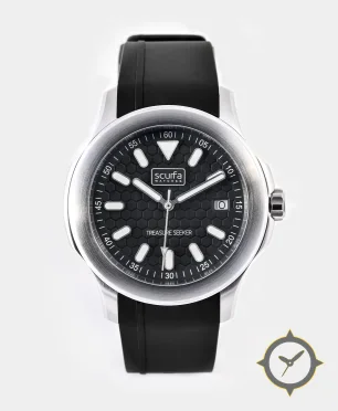 Eine Taucheruhr-Uhr mit einem vielseitigen 40.5mm Gehäuse, das an fast jedes Handgelenk passt, gefertigt aus Edelstahl mit einem Zifferblatt in schwarz und einer besonderen "honeycomb textured"-Oberfläche.