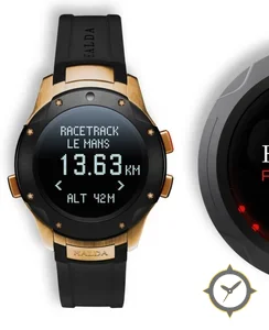 Eine Racing-Uhr mit einem markanten 45.5mm Auftritt am Handgelenk, gefertigt aus Gold mit einem Zifferblatt in schwarz und einer besonderen "carbon-fiber weave"-Oberfläche.