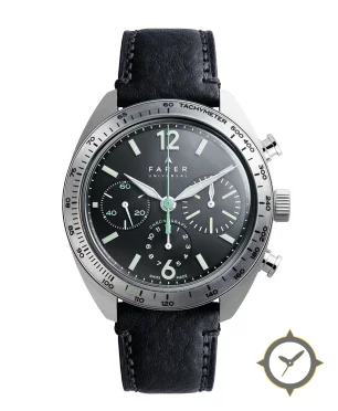 Eine Chronograph-Uhr mit einem vielseitigen 39mm Gehäuse, das an fast jedes Handgelenk passt, gefertigt aus Edelstahl mit einem Zifferblatt in schwarz und einer besonderen "matte"-Oberfläche.