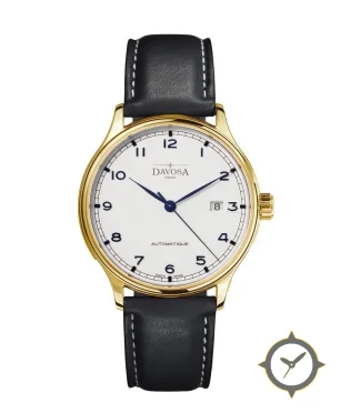Eine Dress-Uhr mit einem markanten 47mm Auftritt am Handgelenk, gefertigt aus Gold mit einem Zifferblatt in weiß und einer besonderen "smooth"-Oberfläche.