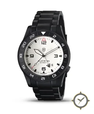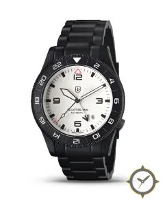 Eine GMT-Uhr gefertigt aus Edelstahl mit einem Zifferblatt in weiß und einer besonderen "matte"-Oberfläche und einer echten GMT-Funktion, mit der du eine zweite Zeitzone verfolgen kannst.