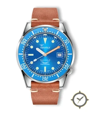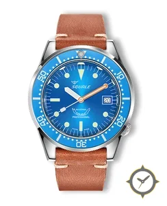 Eine Taucheruhr-Uhr mit einem markanten 42mm Auftritt am Handgelenk, gefertigt aus Edelstahl mit einem Zifferblatt in blau und einer besonderen "sunburst"-Oberfläche.