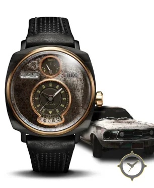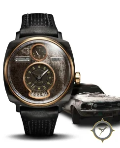 Eine Vintage-Uhr mit einem markanten 47mm Auftritt am Handgelenk, gefertigt aus Edelstahl mit einem Zifferblatt in braun und einer besonderen "distressed/patinated metal"-Oberfläche und einer echten GMT-Funktion, mit der du eine zweite Zeitzone verfolgen kannst.