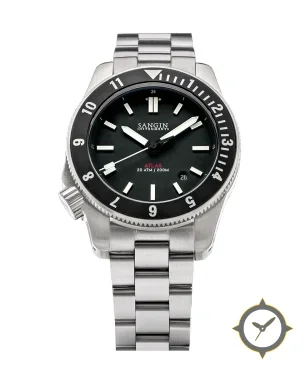Eine Taucheruhr-Uhr mit einem markanten 44mm Auftritt am Handgelenk, gefertigt aus Edelstahl mit einem Zifferblatt in schwarz und einer besonderen "matte"-Oberfläche.