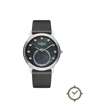 Eine Dress-Uhr mit einem vielseitigen 40.5mm Gehäuse, das an fast jedes Handgelenk passt, gefertigt aus Edelstahl mit einem Zifferblatt in schwarz und einer besonderen "mother-of-pearl"-Oberfläche.
