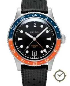 Eine GMT-Uhr mit einem 34.5mm Gehäuse im Vintage-Stil gefertigt aus Edelstahl mit einem Zifferblatt in schwarz und einer besonderen "gloss"-Oberfläche und einer echten GMT-Funktion, mit der du eine zweite Zeitzone verfolgen kannst.