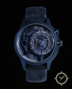 Eine Skelett-Uhr mit einem vielseitigen 41mm Gehäuse, das an fast jedes Handgelenk passt, gefertigt aus Edelstahl mit einem Zifferblatt in grau und einer besonderen "textured industrial finish with exposed mechanical components"-Oberfläche und einer praktischen Gangreserveanzeige.