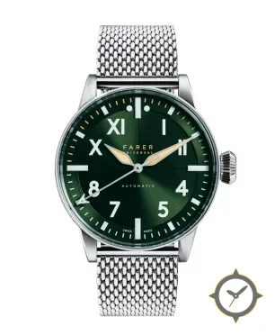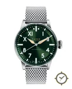 Eine Pilot-Uhr mit einem vielseitigen 38mm Gehäuse, das an fast jedes Handgelenk passt, gefertigt aus Edelstahl mit einem Zifferblatt in grün und einer besonderen "sunburst"-Oberfläche.