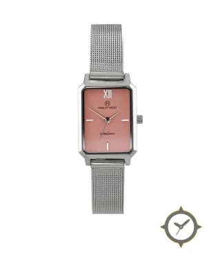 Eine Dress-Uhr mit einem 18.5mm Gehäuse im Vintage-Stil gefertigt aus Edelstahl mit einem Zifferblatt in rot und einer besonderen "sunburst"-Oberfläche.