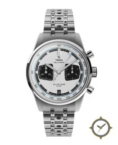 Eine Racing-Uhr mit einem markanten 41.5mm Auftritt am Handgelenk, gefertigt aus Edelstahl mit einem Zifferblatt in weiß und einer besonderen "matte lacquer"-Oberfläche.