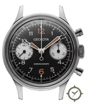 Eine Chronograph-Uhr mit einem markanten 48mm Auftritt am Handgelenk, gefertigt aus Edelstahl mit einem Zifferblatt in schwarz und einer besonderen "matte"-Oberfläche.