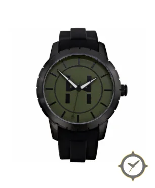 Eine Militär-Uhr mit einem vielseitigen 38mm Gehäuse, das an fast jedes Handgelenk passt, gefertigt aus Edelstahl mit einem Zifferblatt in grün und einer besonderen "matte"-Oberfläche.