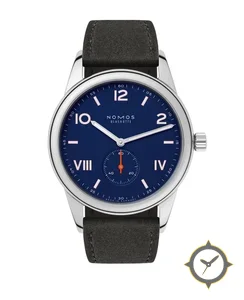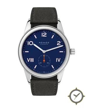 Eine Minimalistisch-Uhr mit einem markanten 44mm Auftritt am Handgelenk, gefertigt aus Edelstahl mit einem Zifferblatt in marineblau und einer besonderen "matte"-Oberfläche.