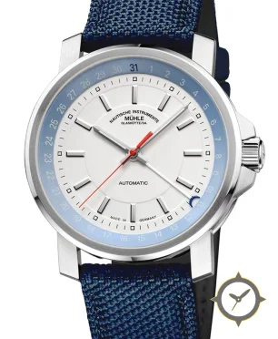 Eine Nautisch-Uhr mit einem vielseitigen 41mm Gehäuse, das an fast jedes Handgelenk passt, gefertigt aus Edelstahl mit einem Zifferblatt in weiß und einer besonderen "matte"-Oberfläche.