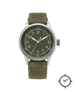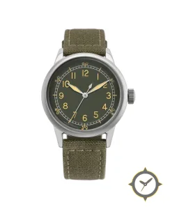 Eine Field-Uhr mit einem vielseitigen 38mm Gehäuse, das an fast jedes Handgelenk passt, gefertigt aus Edelstahl mit einem Zifferblatt in grün und einer besonderen "matte"-Oberfläche und einer echten GMT-Funktion, mit der du eine zweite Zeitzone verfolgen kannst.