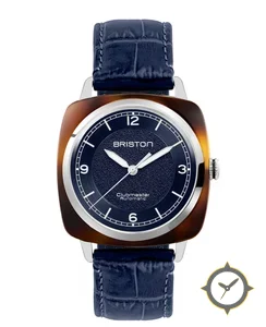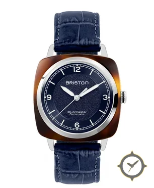 Eine Vintage-Uhr mit einem vielseitigen 39mm Gehäuse, das an fast jedes Handgelenk passt, gefertigt aus Harz mit einem Zifferblatt in marineblau und einer besonderen "textured/grainy center"-Oberfläche.