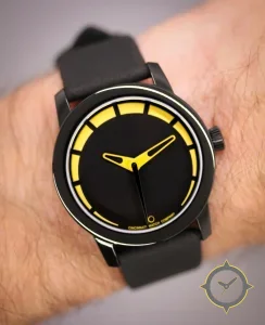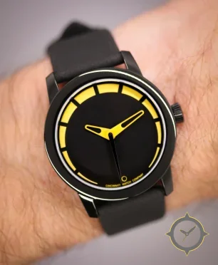 Eine Minimalistisch-Uhr mit einem 32.5mm Gehäuse im Vintage-Stil gefertigt aus Edelstahl mit einem Zifferblatt in schwarz und einer besonderen "matte"-Oberfläche.